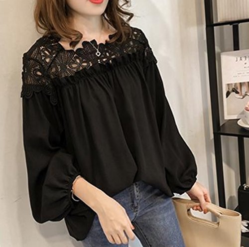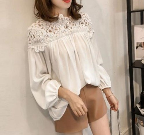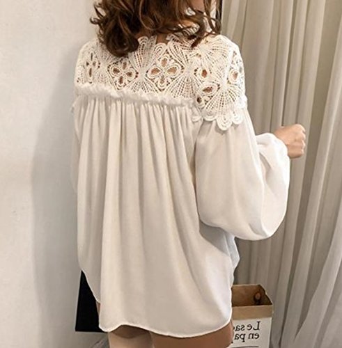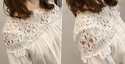 -. Feature : 首元からデコルテ、肩周りまでのレースがお洒落ポイントのシフォンブラウス。アクティブ女子の明るい爽やかさもあり、大人レディースのセクシーさも兼ね備えるデザイン。 / ちょうど良いシースルーのレースがさり気なく大きなアクセントになっているので、着やせ効果も抜群です / 柔らかい素材のシフォン素材のブラウスなので、ゆったり楽チン。 / 春夏秋冬、通年お召しいただけるファッションアイテムになります。 / 様々なカジュアルに合うデザインなのでコーディネイトも楽ラクで嬉しいのもポイントが高く、1枚あると便利なシャツブラウスです。