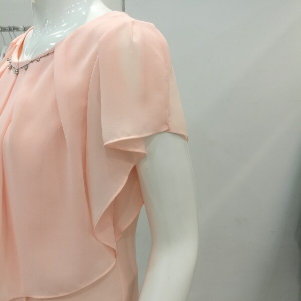 살랑살랑 하늘하늘 앞면은 랩으로한겹더있어 가슴부분 커버되며 뒷지퍼로 슬림하다.