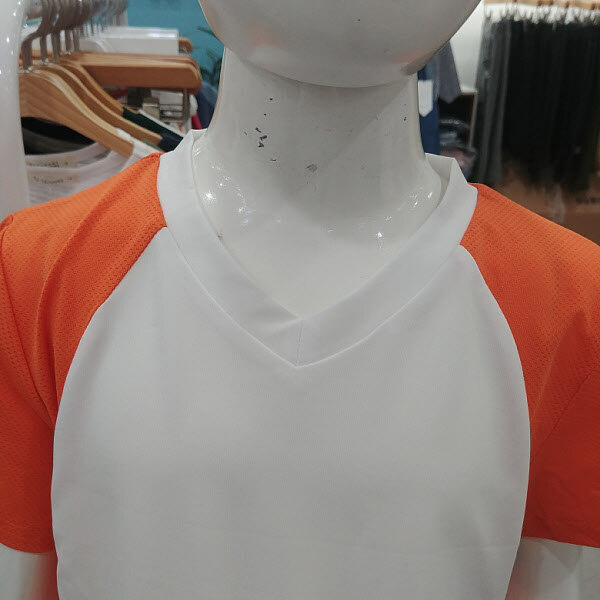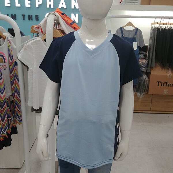 얇은 소재의 브이넥티셔츠입니다,칼라가 네이비로 두가지색상의 티셔츠, 옆선 배색티셔츠라 입으면 더커보이고 시원합니다.