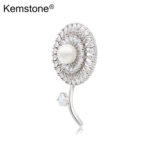 -. Title : Kemstone Dandelion Brooch Bouquet Pearl Crystal Brooch Pin for Women