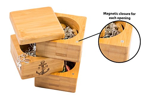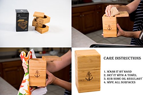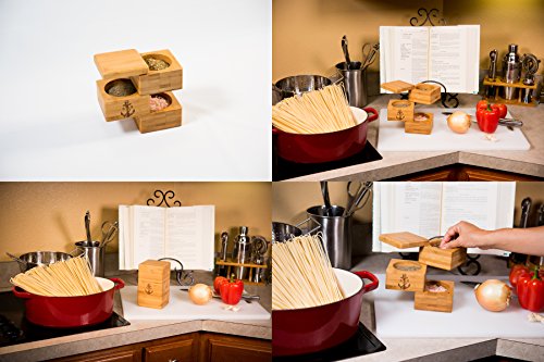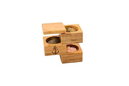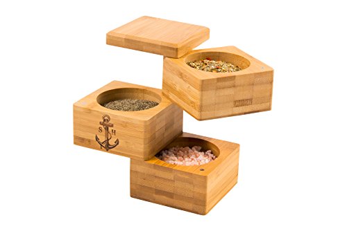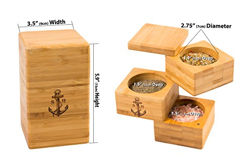 Stock Harbor Triple Tier Salt Storage Box, 100% Authentic Natural Bamboo Container in an Innovative Sturdy Space Saving Design with Secure Magnetic Swivel Lid, Spice Holder Organization Jar
