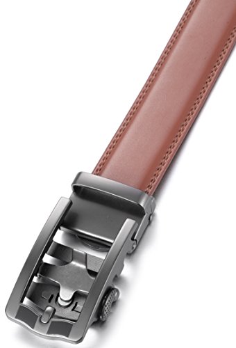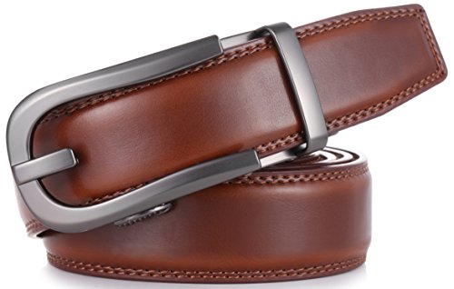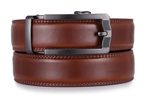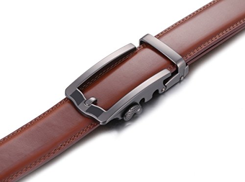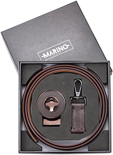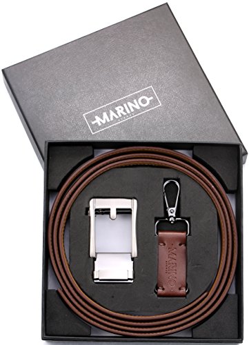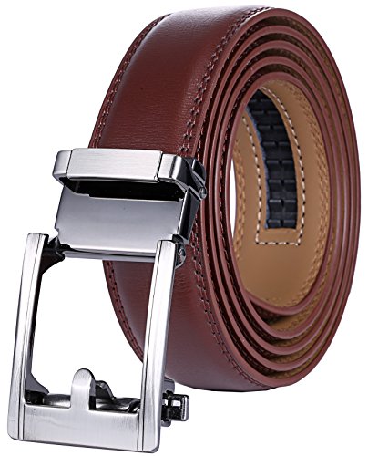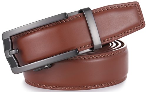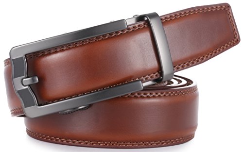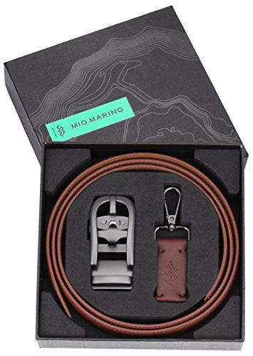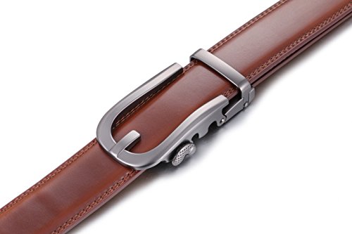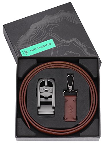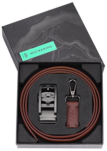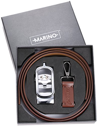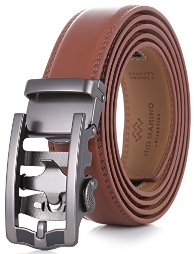 Marino Ratchet Click Belts for Men - Mens Comfort Genuine Leather Dress Belt - with Automatic Buckle, Enclosed in an Elegant Gift Box - Brown - Adjustable from 28" to 44" Waist