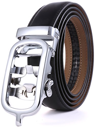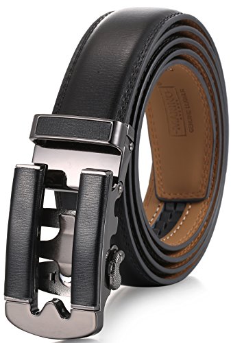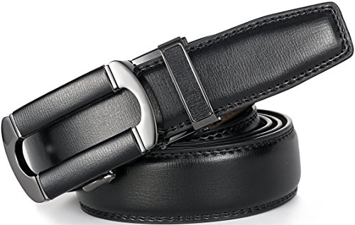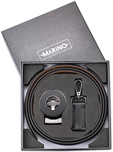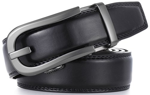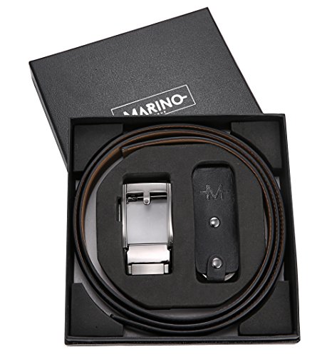 Marino Ratchet Click Belts for Men - Mens Comfort Genuine Leather Dress Belt - with Automatic Buckle, Enclosed in an Elegant Gift Box - Black - Adjustable from 28" to 44" Waist