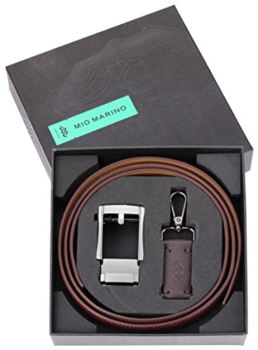 Mio Marino Ratchet Click Belts for Men - Mens Comfort Genuine Leather Dress Belt - with Automatic Buckle, Enclosed in an Elegant Gift Box - Style 185 - Burnt Umber - Adjustable from 28" to 44" Waist