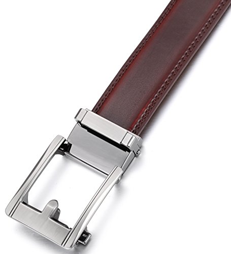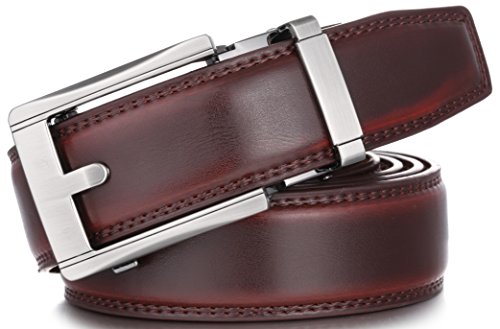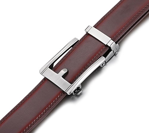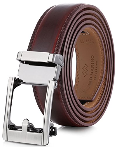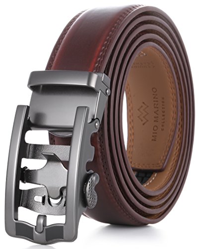 Mio Marino Ratchet Click Belts for Men - Mens Comfort Genuine Leather Dress Belt - with Automatic Buckle, Enclosed in an Elegant Gift Box - Mahogany - Adjustable from 28" to 44" Waist