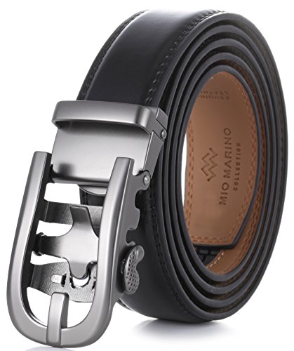 Mio Marino Ratchet Click Belts for Men - Mens Comfort Genuine Leather Dress Belt - with Automatic Buckle, Enclosed in an Elegant Gift Box - Style 185 - Black - Adjustable from 28" to 44" Waist