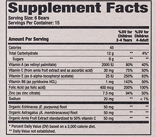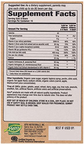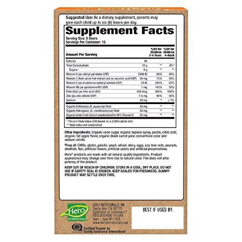 Product Description Supports optimal immune health with a powerful blend of immune boosting vitamins and herbs including Vitamin C, Zinc, Echinacea in a certified Organic gummy. 0