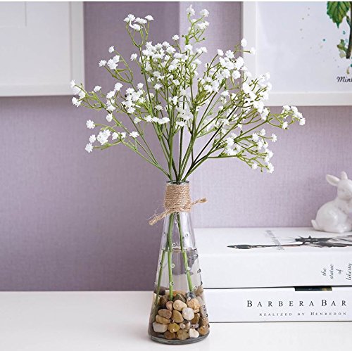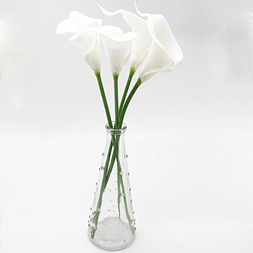 Leoyoubei transparent Glass Vase 7.25 "and 4 pack Artificial Flower 13.5-Inch Calla Lily Latex Real Touch Flower for Wedding Office Home Decoration white