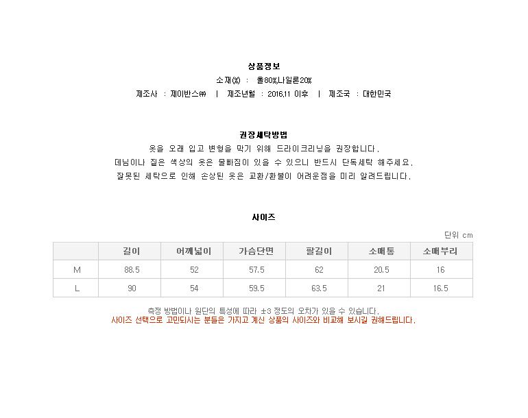 중국산이 아닌 국내산으로 캐시미어가공된 고급 울 이중지 원단을 사용하고,