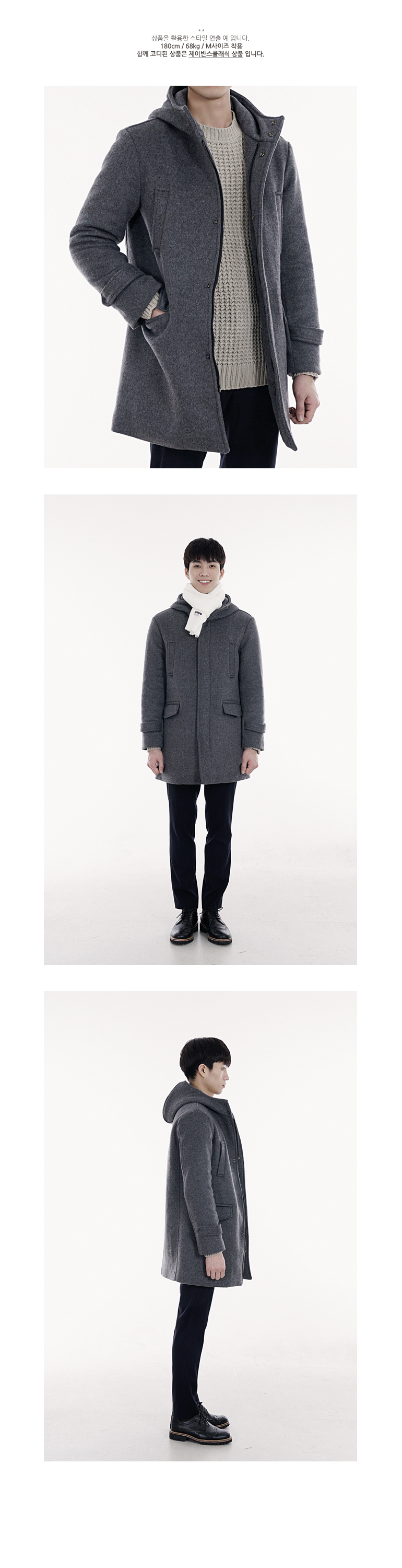 편안한 핏과 착용감의 후드코트로 터틀넥이나 니트와 함께 코디하면 잘 어울립니다.