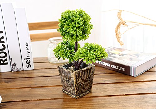 Miracliy 10" Artificial Potted Tabletop Plants Small Synthetic Decor Bonsai for Office Home Desks and Tables Decorations (Green Good Luck Tree)