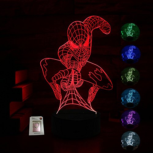 Spiderman Lamp Christmas Gift Night Light for Kids 3D Illusion Lamp Led Desk Table Unique Birthday Gifts for Boys Home Decor Office Bedroom Party Decorations Nursery Lighting 7 Color Bonus Phone Stand
