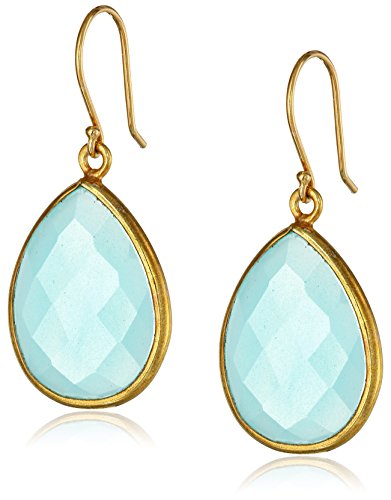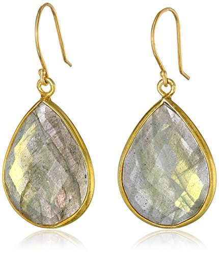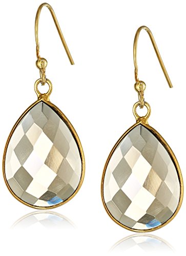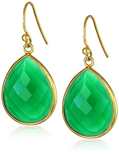 -. Title : Gold-Plated Gemstone Teardrop Earrings