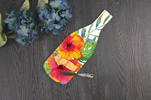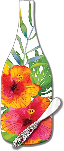 CounterArt 'Tropical Paradise' Wine Bottle Shaped 12-1/2" Glass Cheese Board with Spreader Knife