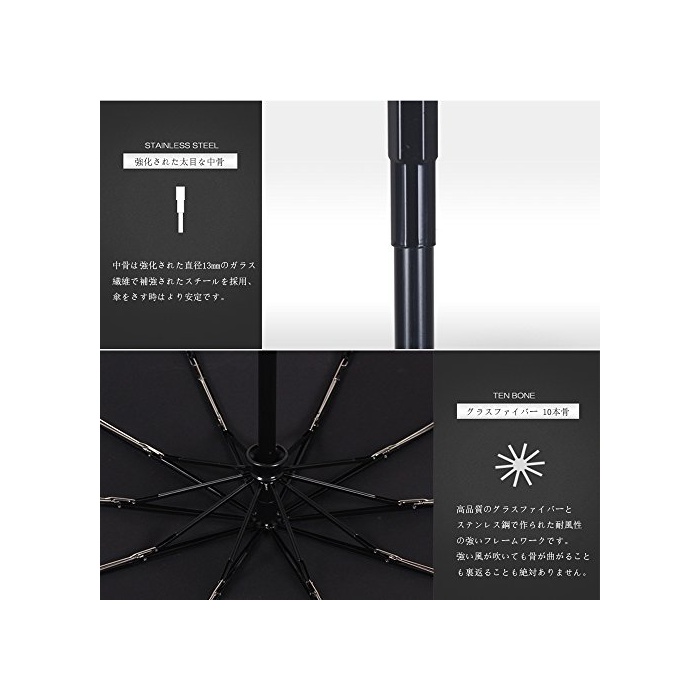 【내강풍성】글래스 화이버(fiber)제의 산뼈가 10개 어느(있는) 때문에,알루미늄 합금제의 우산 보다 우수한 내풍성을 들고 있습니다.블랙 스틸 샤프트 리브와 우산의 리브를 강화 하고, 고품질의 글래스 화이버(fiber)와 스테인레스강에 만들어졌 내풍성이 강한 framework입니다.세찬 바람이 불어도 뼈가 구부러지는 것도 뒤 돌아오는 것도 절대 없습니다.