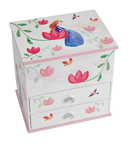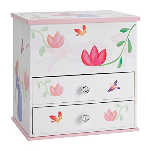 JewelKeeper Wooden Music Box with 2 Pullout Drawers, White and Pink Flower Design, Waltz of the Flowers Tune
