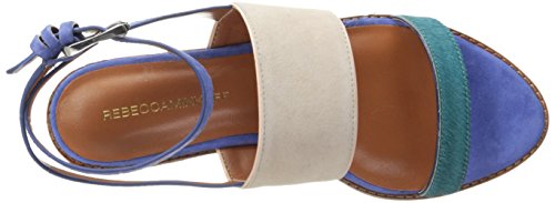 Color-block sandal featuring low heel with contrast inset and adjustable ankle strap with buckle closure