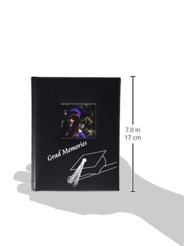 - Rich black cover with the message Grad Memories and a grad-themed graphic in white