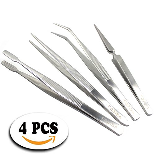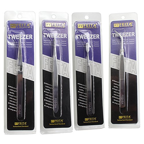 FEITA 4PCS Precision Stainless Steel Tweezers Set for Beauty Nail Art Crafting Jewelry Hobby Picking Tool