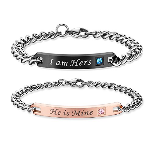 -. Title : AmorFeel His Only Her One Stainless Steel His and Hers Couple Bracelet(2pcs)