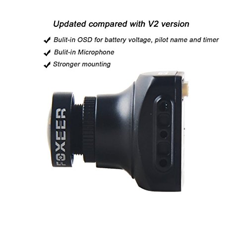 Thriverline FPV Camera Foxeer Arrow V3 600TVL CCD NTSC IR Block 2.5mm Lens HAD II Built-in OSD MIC for FPV Racing Drone like QAV210 etc Black