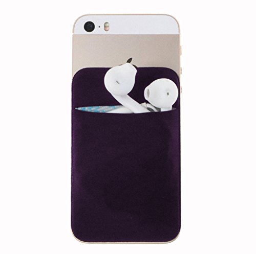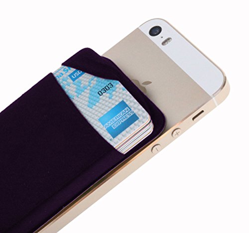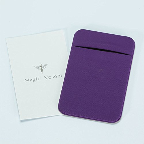 Magic Vosom Card Secure Holder Stick on Lycra Wallet Pouch Support iPhone 6 7 Samsung Galaxy and Blu Smartphones Purple