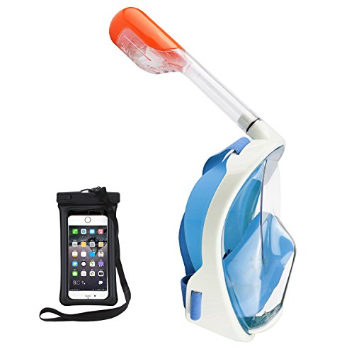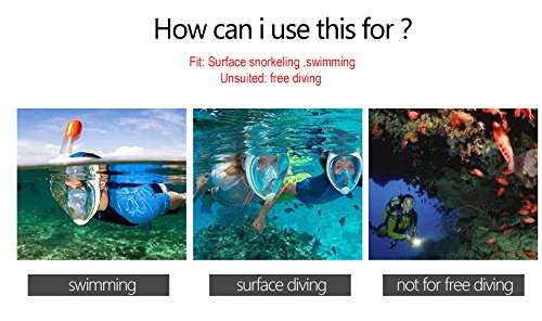 Wonice 180° View Quality guarantee Full Face Snorkel Mask Set For Adult and Kids (Blue( orange tube), S/M)