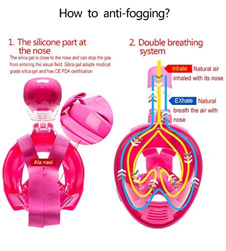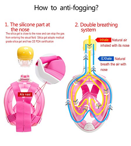 Wonice Esaytobreathe Full Face Snorkel Mask Set For Adult and Kids (Pink, L/XL)