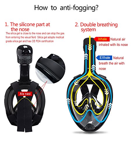 Wonice Esaytobreathe Full Face Snorkel Mask Set For Adult and Kids (Black, L/XL)