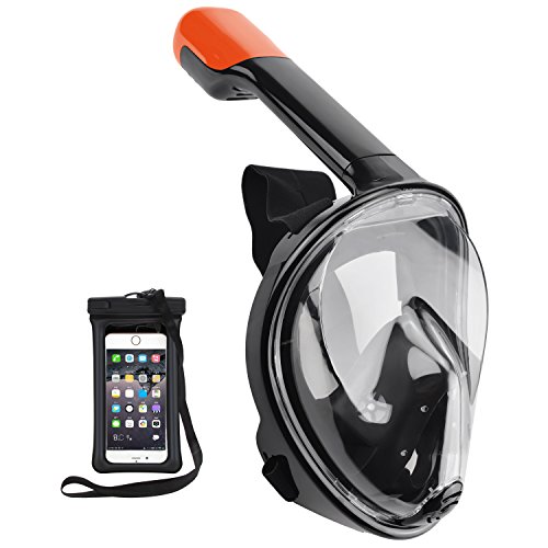 Wonice 180° View Quality guarantee Full Face Snorkel Mask Set For Adult and Kids(Black( orange tube), L/XL)