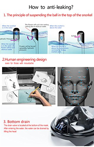 Wonice 180° View Quality guarantee Full Face Snorkel Mask Set For Adult and Kids (Blackwhite, S/M)