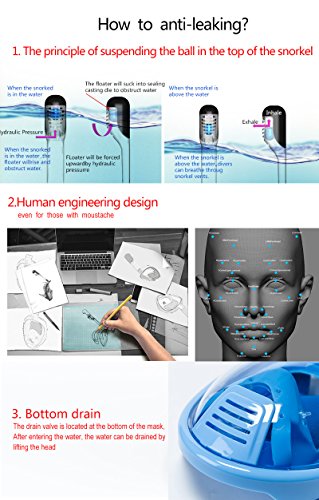 Wonice 180° View Quality guarantee Full Face Snorkel Mask Set For Adult and Kids (BLUEROUND, S/M)