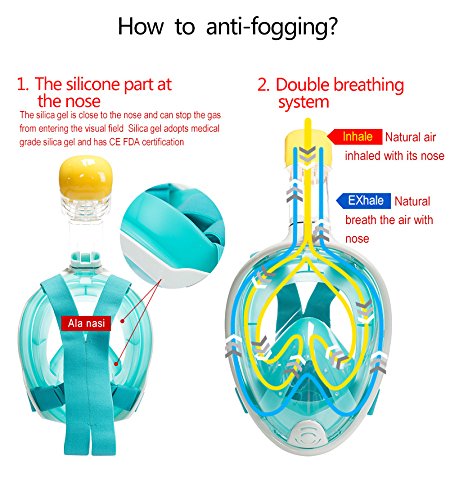 Wonice Esaytobreathe Full Face Snorkel Mask Set For Adult and Kids (Green, L/XL)