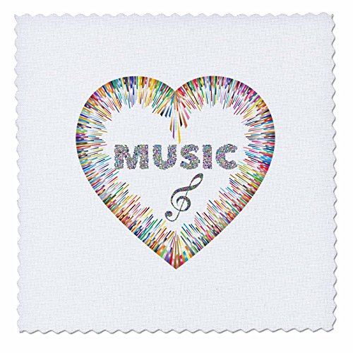 3dRose Image of Color Heart with Glittery Word Music Quilt Square, 12 x 12"
