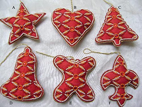 Handmade Decorative Hanging Ornaments - 6pcs in a pack - Beaded Product - Embedded Red Stones