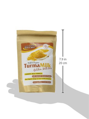 -. Binding : Health and Beauty -. Brand : North American Herb & Spice -. EAN : 0635824006732 -. Feature : Certified organic turmeric powder / 5% Curcumin / Contains organic ginger -. IsAdultProduct : 0 -. Label : North American Herb & Spice -. LegalDisclaimer : North American Herb & Spice Turmamilk Mix, 130 Gram/ non-returnable -. Manufacturer : North American Herb & Spice -. MPN : 231673 -. NumberOfItems : 1 -. PackageQuantity : 1 -. PartNumber : 231673 -. ProductGroup : Health and Beauty -. ProductTypeName : HEALTH_PERSONAL_CARE -. PublicationDate : 2017-04-17 -. Publisher : North American Herb & Spice -. ReleaseDate : 2017-04-17 -. Size : 130 g (5.5 oz) -. Studio : North American Herb & Spice -. Title : North American Herb & Spice Turmamilk Mix, 130 Gram -. UPC : 635824006732
