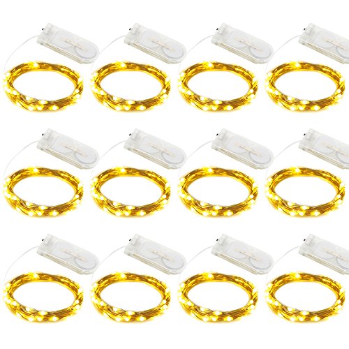 ER CHEN(TM) 12 Set of Micro 30 LEDs Super Bright Rope Lights Battery Operated 10 Ft Long Ultra Thin Silver Coating Copper Wire Starry String lights for Home Bedroom Party Tree,Warm White