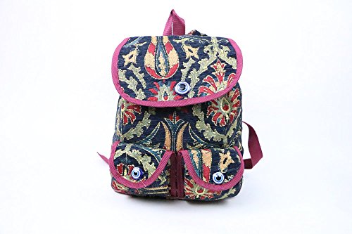 -. Feature : *Handmade Woven Tapestry Small Backpack / *Embroidered Floral Patterns / *Each Bag is one-of-a-kind. There will not be two alike / *Materials: Turkish Woven Fabric, Tapestry Fabric, Cotton / *We Ship From California, USA