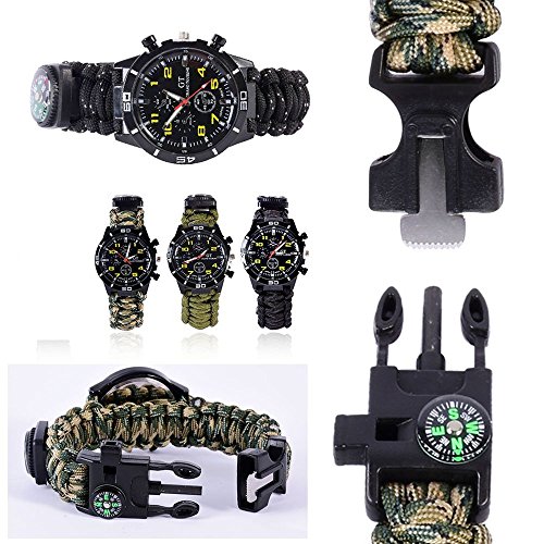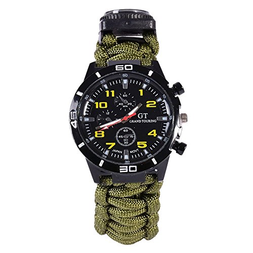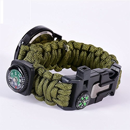 FVERMECKY 다기능 아웃도어 손목시계 방재 응급처치 《후숀》 맨즈 폴리에스텔 승매듭 개구리 무늬 검정 (그린)
