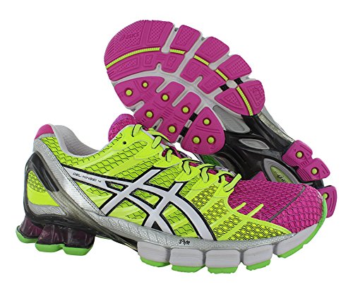 Women's Asics, Gel Kinsei 4 A premium technical running shoe style breathablesynthetic and mesh upper with reflective detailing. designed to provide a supportive and personal fit for both pronators or a neutral runner Special Propulsion Trusstic system improves the speed and efficiency of running gait by creating tension in the sole and mid section GEL cushioning in the rearfoot absorbs shock and helps to maintain smooth transitions. New lightweight Heel clutch system molds to the shape of the foot and provides additional support asymmetric lacing system follows the contours of the foot Durable traction outsoleFeature