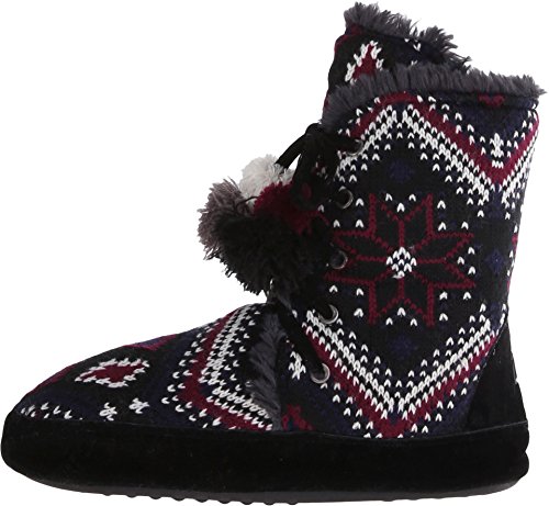 Brighten up your wardrobe with folklore fabulous slipper colleciton. This collection is made up of an eclectic mix of rich colors and patterns taken from different cultures. The Juno has a snowflake, bird's eye pattern made of 100% acrylic and has a 100% polyester faux fur lining. Juno is available in S (5-6), M (6.5-7.5), L (8-9), and XL (9.5-10.5). Spot clean, no bleach, and lay flat to dry. Made in China. Material: Polyester, acrylic.Feature