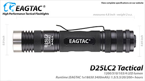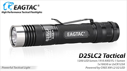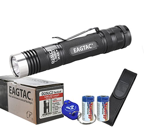 Eagletac D25LC2 Tactical 1200 Lumens Cree XM-L2 U2 LED Flashlight w/ Premium Holster, Lanyard, 2x CR123A Tenergy Batteries & Lumen Tactical Keychain Light by EagleTac
