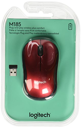 -. Title : Logitech M185 Wireless Mouse, Red 910-003635