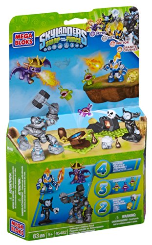 -. Feature : Buildable Granite Crusher (Earth character), Hex (Undead character) and Ignitor (Fire character) with weapons / 2 green Chompies + 1 rare purple Chompy / 1 white Sheep + 1 rare gold Sheep / Combines with other Mega Bloks Skylanders SWAP Force characters and playsets to build your adventure!