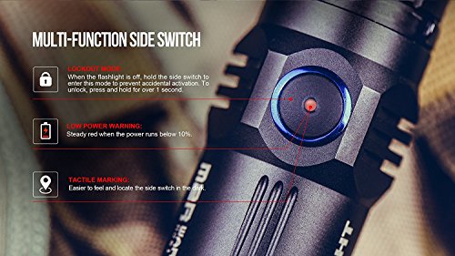 USER FRIENDLY TAIL SWITCH & MULTI-FUNCTIONAL SIDE SWITCH : QUIET-minimal sound when clicked reducing the chance of giving away the user's position . DURABLE-stainless steel. Won't wear out over time . QUICK AND EASY TO OPERATE : there is no barrier or ring around the switch allowing it to be pressed without worrying about misfires . LOCKOUT MODE ,LOWPER WARNNING, TACTILE MARKING .