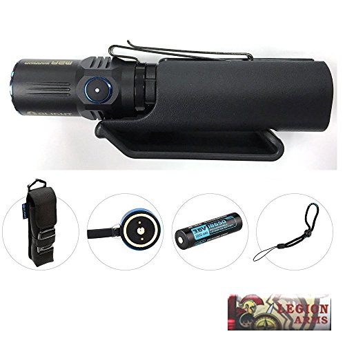 Holster Bundle: Olight M2R Warrior tactical flashlight cree led 1500 lumen with 3500mAh HDC 18650 Rechargeable battery, usb magnetic cable, Holster, click-on Kydex holster