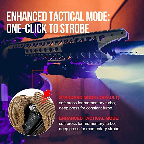ENHANCED TACTICAL MODE - one click to strobe . Standard mode - soft press for momentary turbo, deep press for constant turbo . Enhanced tactical mode-soft press for momentary turbo, deep press for momentary strobe .