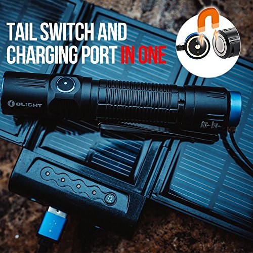 COMPATIBLE WITH ALL CONVENTIAL 18650 BATTERIES: The m2r compatible with any 18650 battery and can be charged with either the included MCC USB cable or the OLIGHT Micro-dok ( II or above )