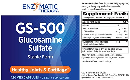 ReleaseDate : 2008-02-08 Studio : Enzymatic Therapy, Inc. Publisher : Enzymatic Therapy, Inc. Binding : Health and Beauty Product Description Enzymatic Therapy Gs-500 is a stable form of glucosamine sulfate that has been shown to help build and support joint cartilage. 0