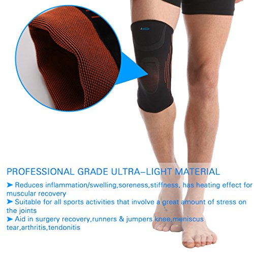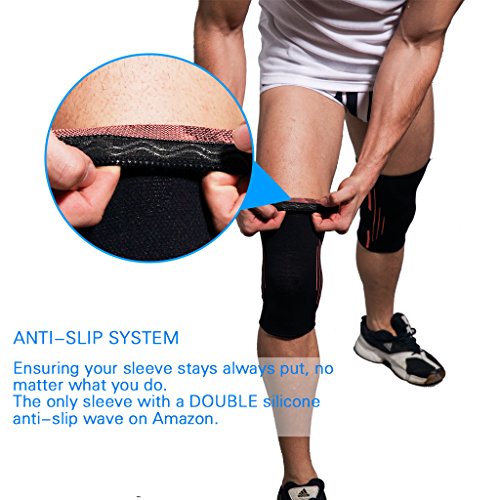 -. Feature : COMPRESSION - During the movement reduce pressure, shock, swelling,soreness,stiffness and warm your muscular helps recovery. / SPORTS - Improves your blood circulation. prevents pain from a Torn Meniscus, Sprain or Strain. / MATERIAL - Premium elastic Mixed fabric Nylon and Spandex. Breathable, moisture wicking. prevent bacteria from breeding. Keep your knee dry in day. / Non-slip - No matter what you do, ASOONYUM Knee supports built-in Double silicone anti-slip system, ensuring your sleeve stays always put, Not easy to roll down, protecting vulnerable knees. / 2 pcs Sleeve and Breathable carrying bag in The Box - Who's need? For basketball,baseball,rugby,football,soccer,tennis,hiking,skiing,cycling,running,squats,weightlifting, yoga,fitness,ect.